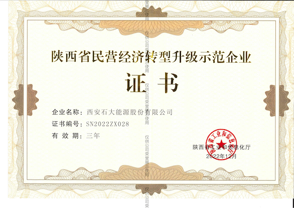 陜西省民營經(jīng)濟轉(zhuǎn)型升級示范企業(yè)證書